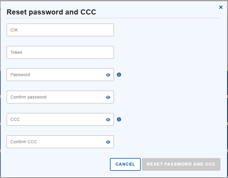 4. Return to the EDGAR Filer Management website, scroll down and select Reset password and CCC.