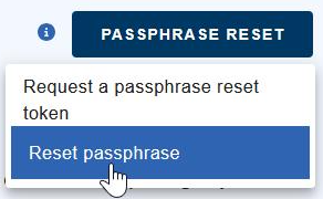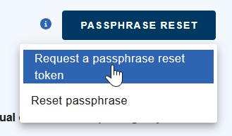 2. Select PASSPHRASE RESET, then select “Request a passphrase reset token.”