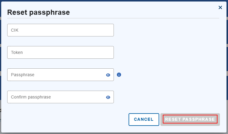 Type the passphrase again to confirm and then select Reset Passphrase.