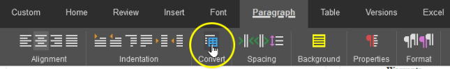 Copy the text from a bullet list in Word and paste it into ThunderDome® Editor. Select the text, press Convert to List, then set the number of tabs to adjust the alignment.