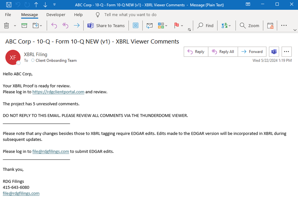After you’ve submitted the XBRL update request, the XBRL team will begin the update. The initial request is typically completed in 72-96 hours. You may continue to edit the document while the XBRL update is in process.